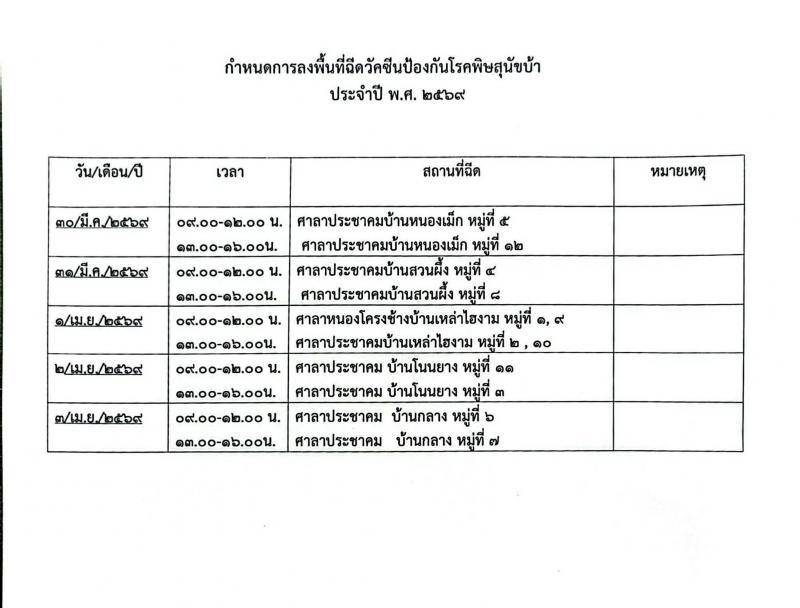 กองสาธารณสุขและสิ่งแวดล้อม องค์การบริหารส่วนตำบลเหล่าไฮงาม ดำเนินการจัดกิจกรรมโครงการสัตว์ปลอดโรค คนปลอดภัยจากพิษสนัขบ้า ตามปณิธาน ศ.ดร.สมเด็จพระเจ้าลูกเธอเจ้าฟ้าจุฬาภรณวลัยลักษณ์ อัรราชกุมารี ประจำปีงบประะมาณ 2569 ตั้งแต่วันที่ 30 มีนาคม - 3 เมษายน 2569