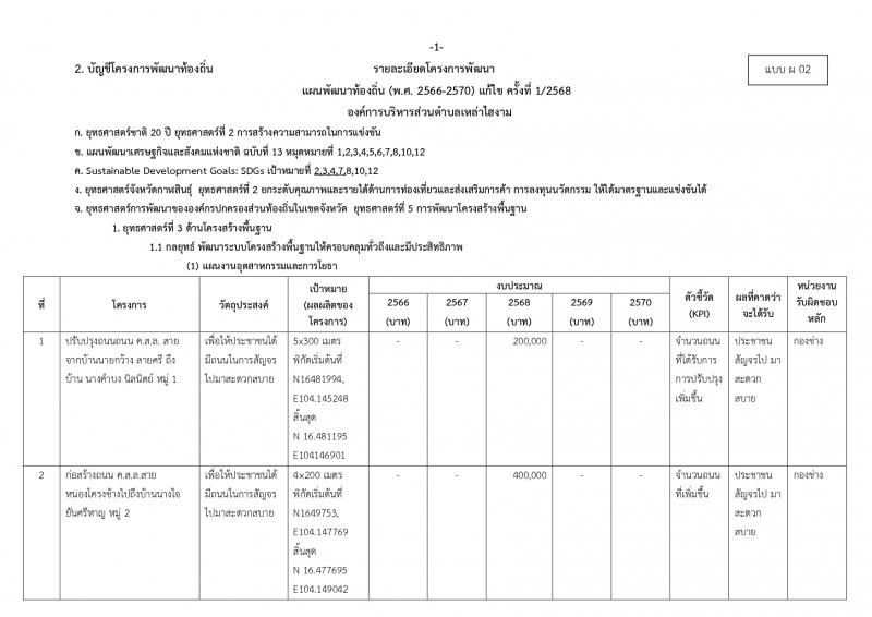 ประกาศการแก้ไขแผนพัฒนาท้องถิ่น (พ.ศ. 2566 - 2570) ครั้งที่ 1/2568