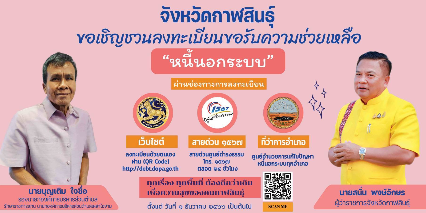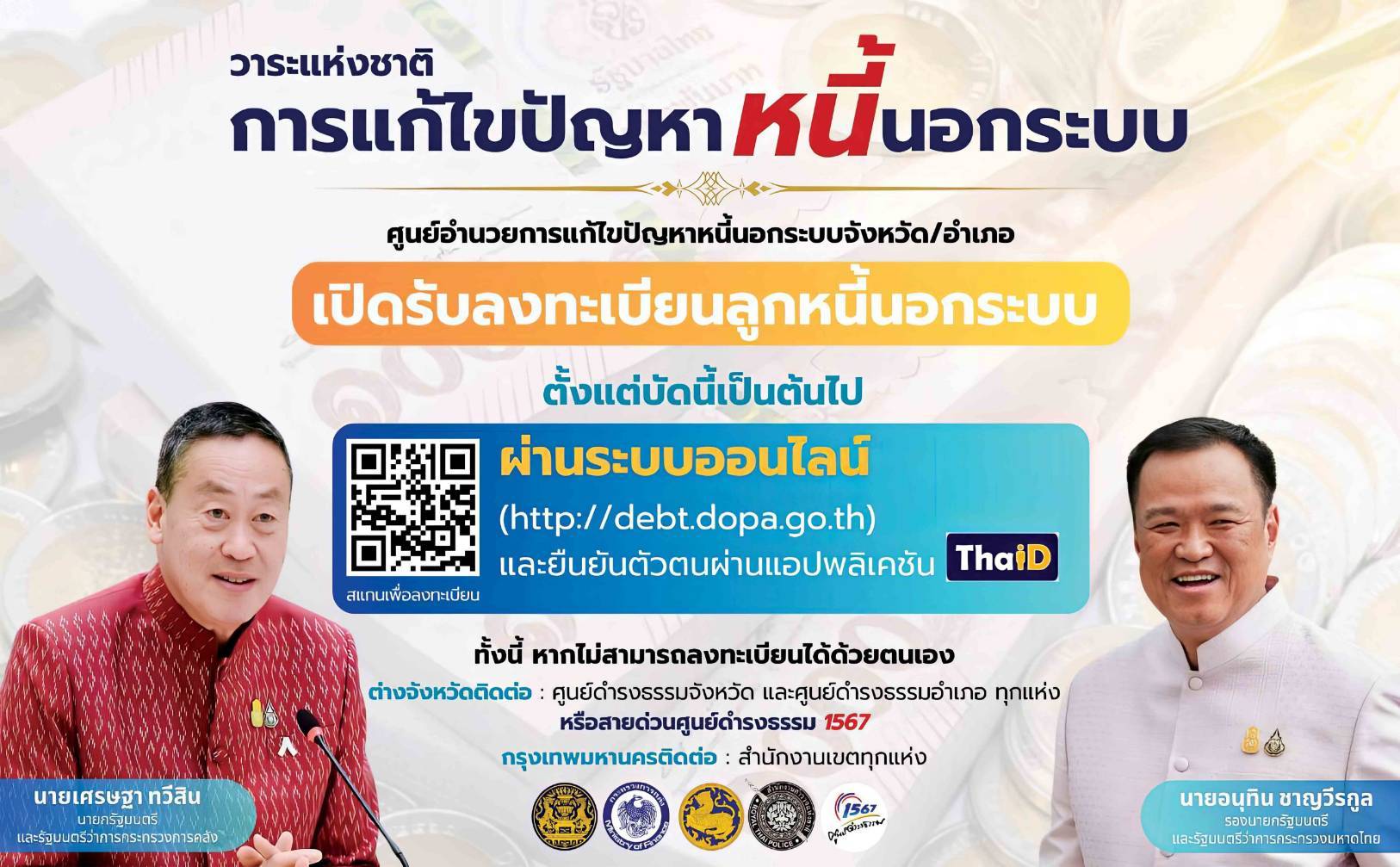 ขอเชิญชวนลงทะเบียนขอรับความช่วยเหลือ หนี้นอกระบบ