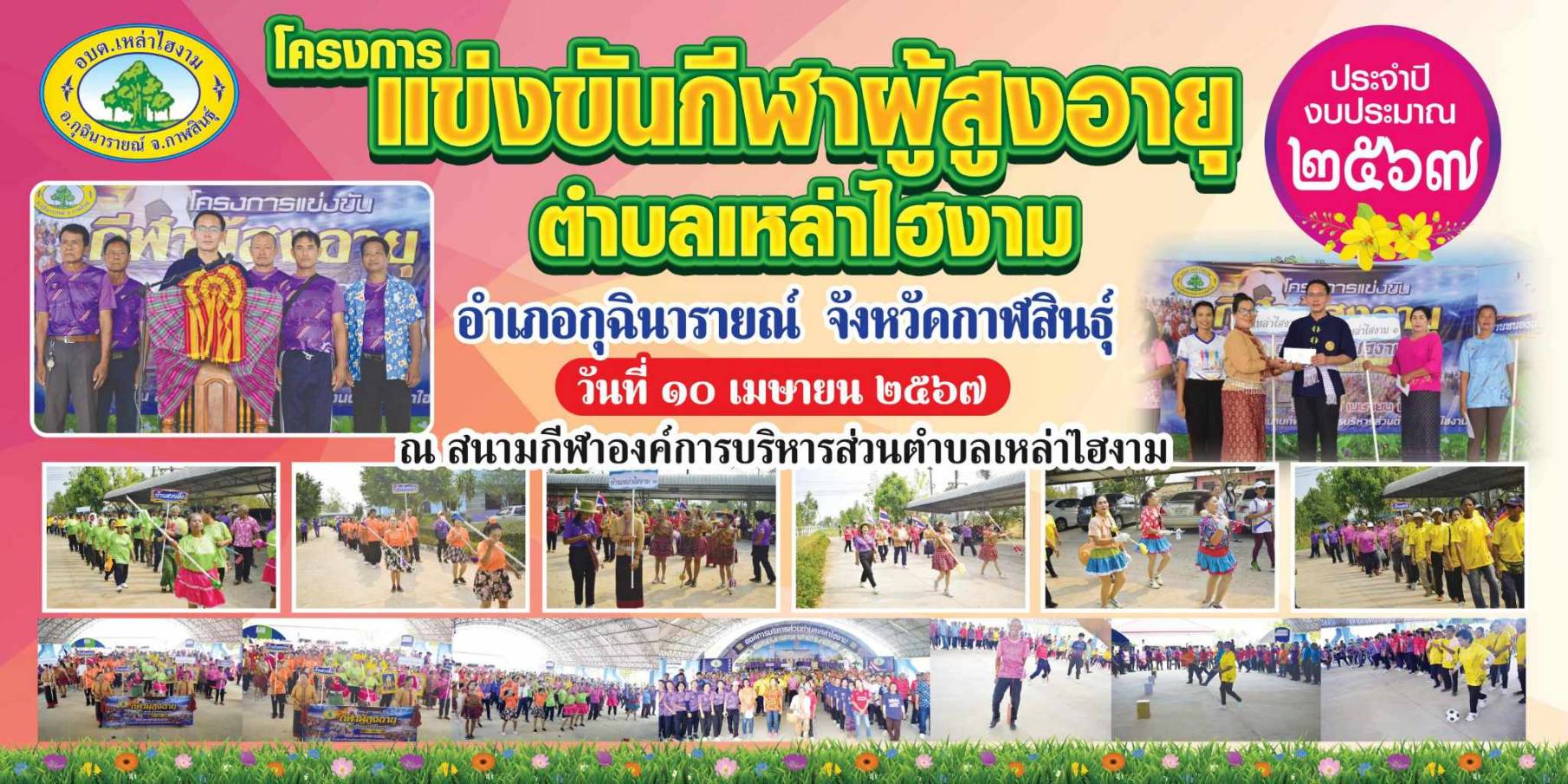 ขอเชิญร่วมกิจกรรมโครงการแข่งขันกีฬาผู้สูงอายุ ในวันที่ 10 เมษายน 2567 ในวันที่ 10 เดือน เมษายนพ.ศ. 2567 เวลา 08.30 น.เป็นต้น ณ สนามกีฬาองค์การบริหารส่วนตำบลเหล่าไฮงาม อ.กุฉินารายณ์ จ.กาฬสินธุ์