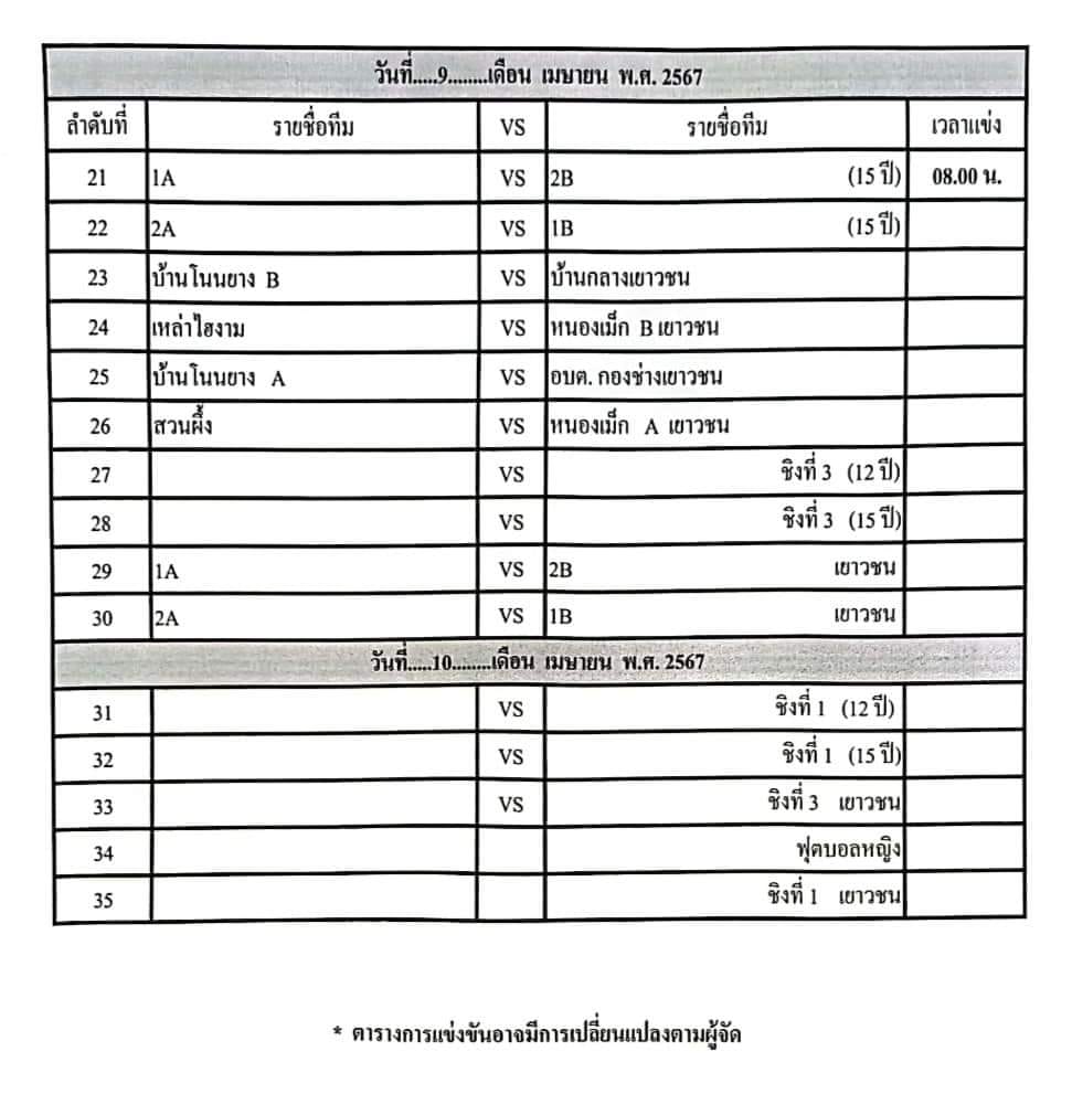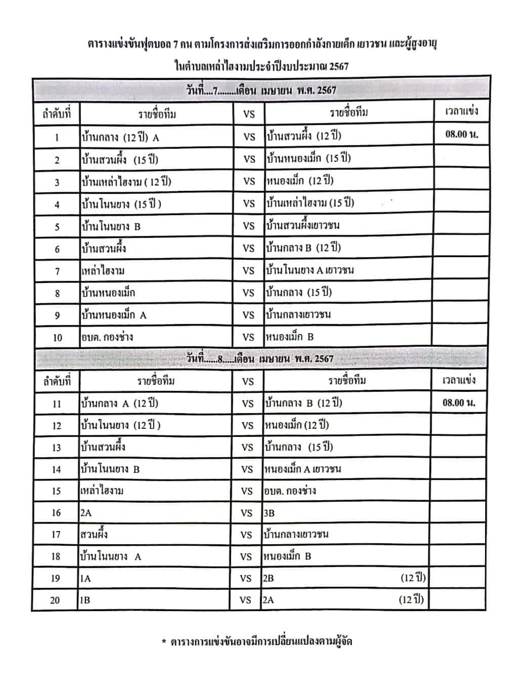 ตารางแข่งขัน ฟุตบอล 7 คน อบต.เหล่าไฮงาม