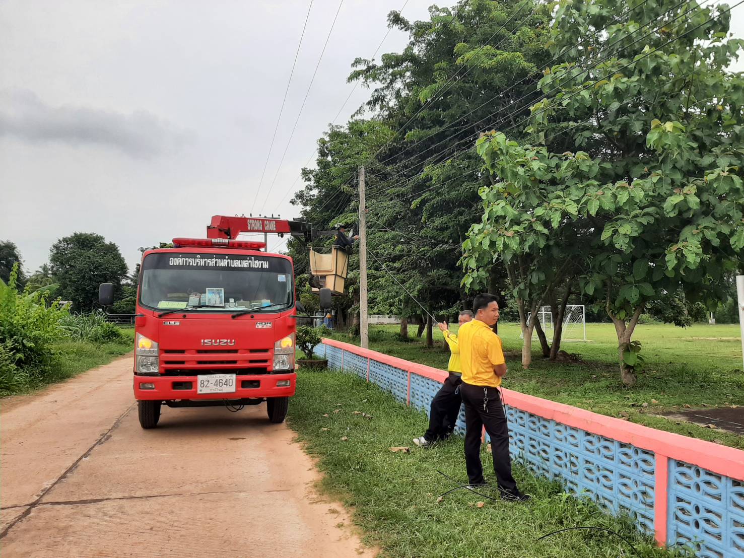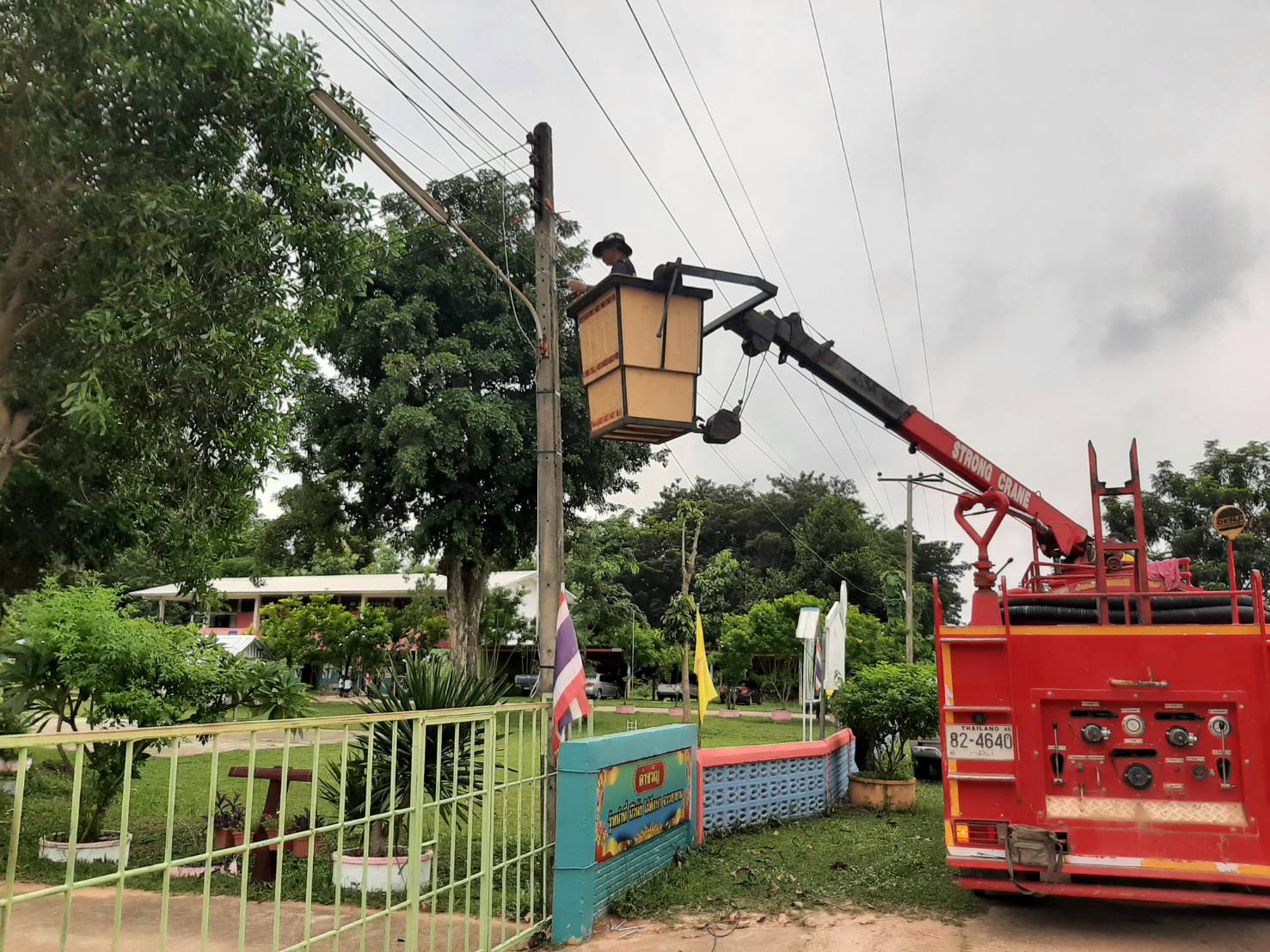 กองช่าง ลงพื้นที่ขยายไฟฟ้าแสงสว่างหน้าโรงเรียนบ้านโนนยางหมู่ที่ 3