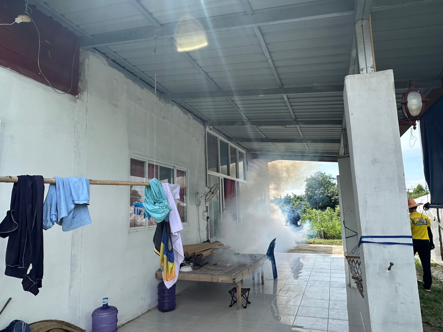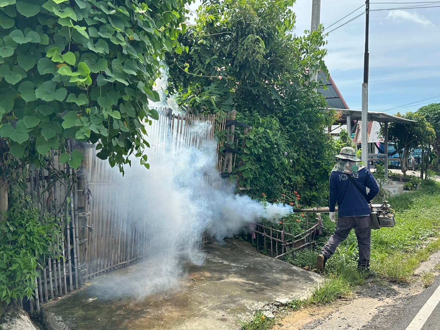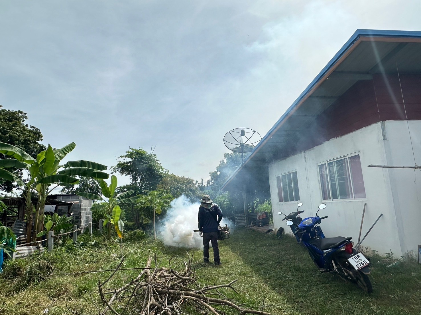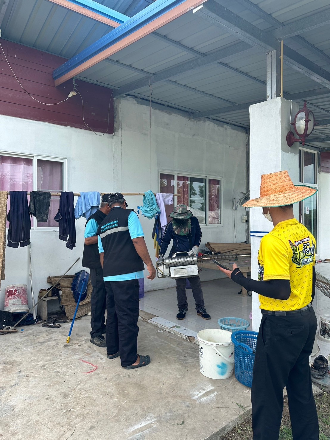 กองสาธารณสุขและสิ่งแวดล้อม ลงพื้นที่ พ่นหมอกควันกําจัดลูกน้ำยุงลายและควบคุมการระบาดของโรคไข้เลือดออก บ้านสวนผึ้ง หมู่ที่ 4