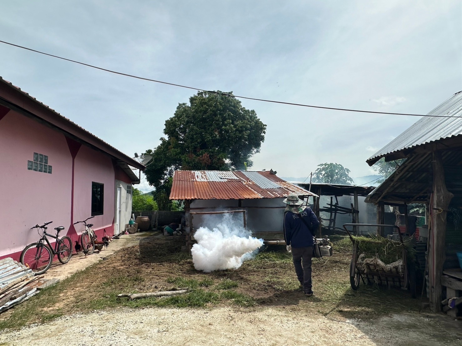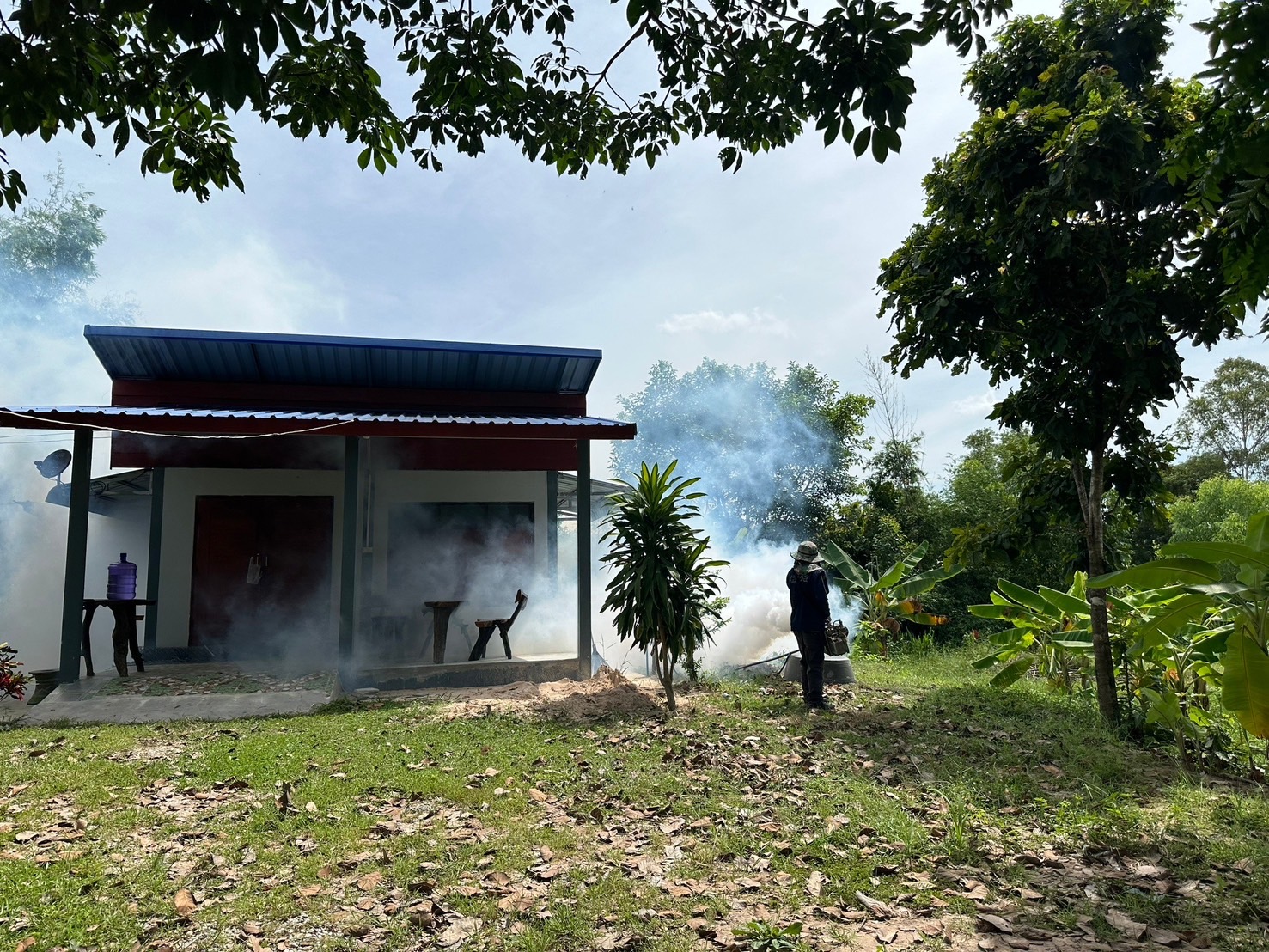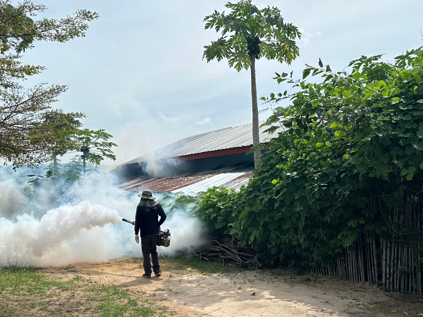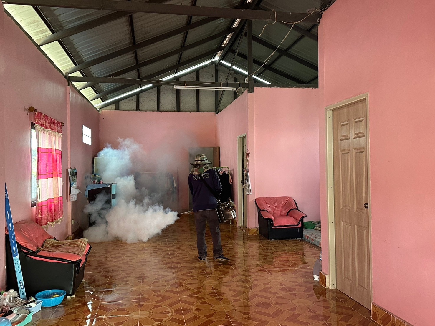 กองสาธารณสุขและสิ่งแวดล้อม ลงพื้นที่ พ่นหมอกควันกําจัดลูกน้ำยุงลายและควบคุมการระบาดของโรคไข้เลือดออก บ้านสวนผึ้ง หมู่ที่ 4