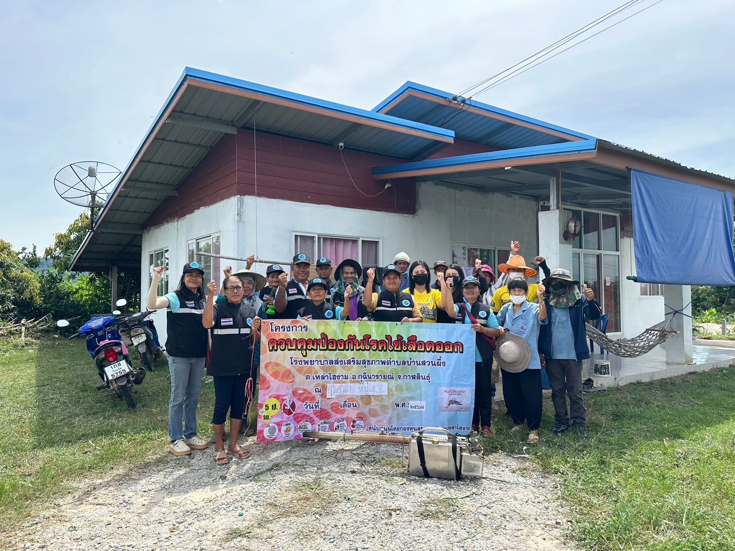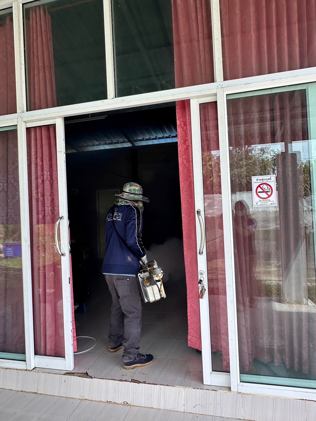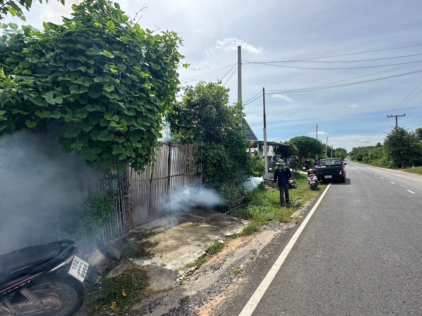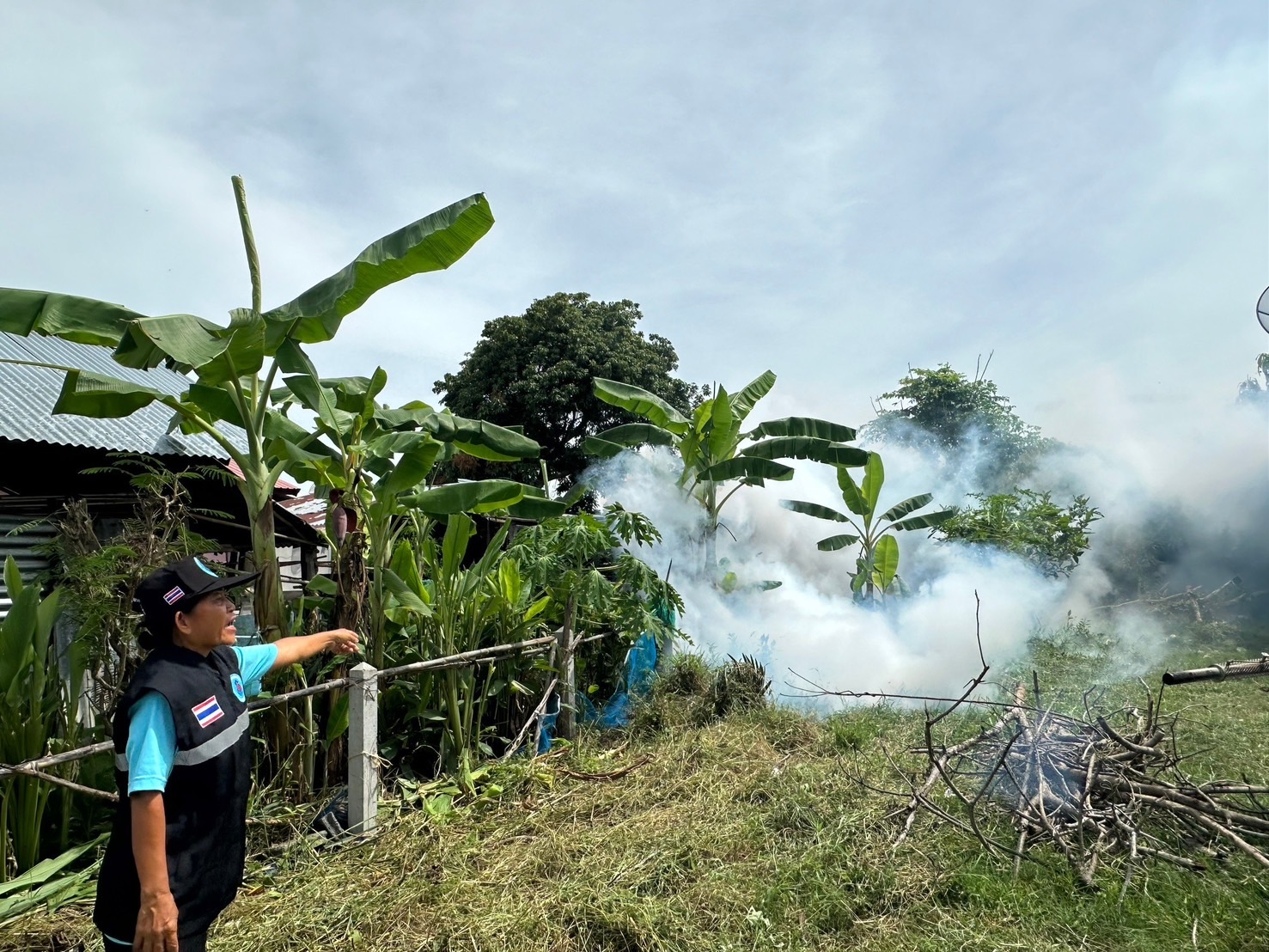 กองสาธารณสุขและสิ่งแวดล้อม ลงพื้นที่ พ่นหมอกควันกําจัดลูกน้ำยุงลายและควบคุมการระบาดของโรคไข้เลือดออก บ้านสวนผึ้ง หมู่ที่ 4