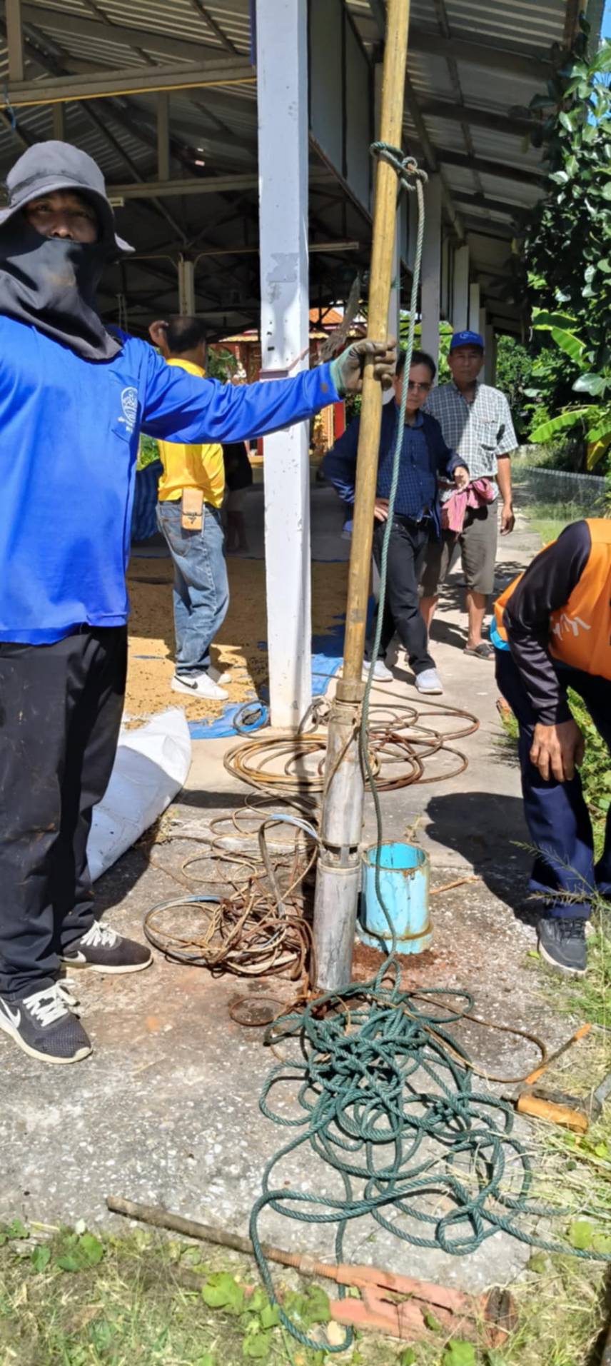 กองช่าง พร้อมด้วยงานป้องกันและบรรเทาสาธารณภัย ลงพื้นที่สำรวจระบบประปา เพื่อดำเนินการแก้ปัญหาน้ำประปา ณ หมู่ที่ 3 บ้านโนนยาง