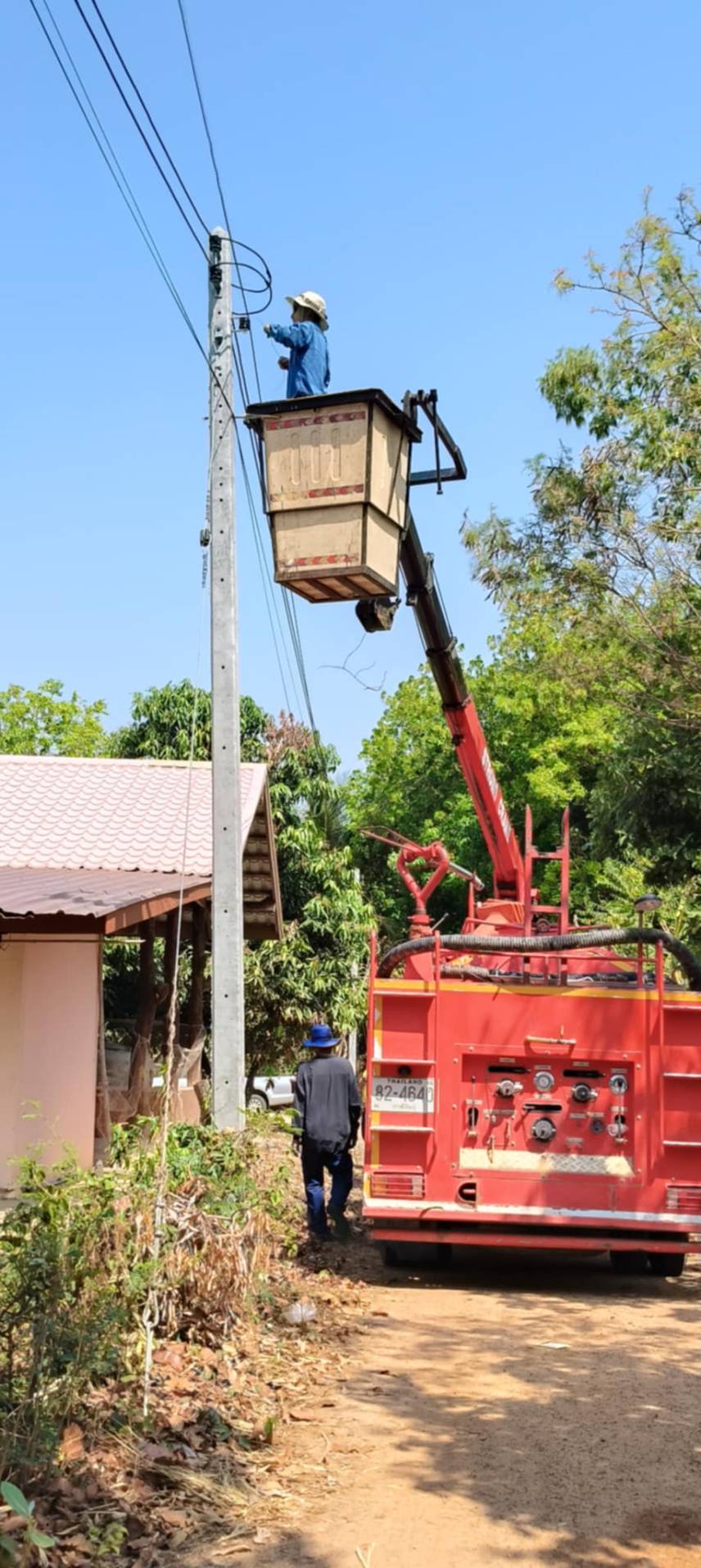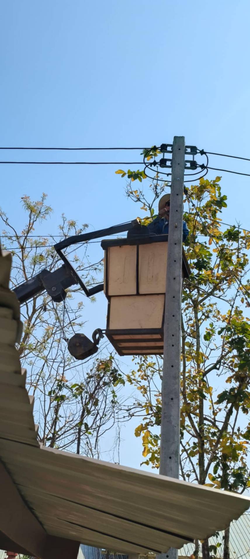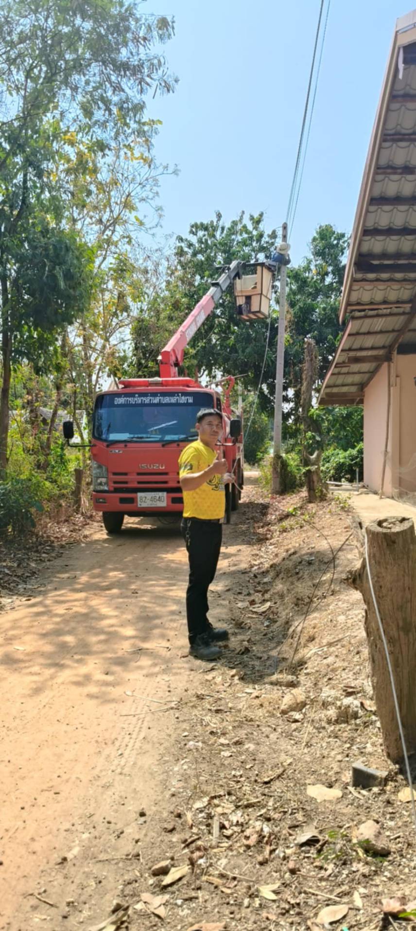 กองช่างและงานป้องกันและบรรเทาสาธารณภัย ลงพื้นที่ขยายสายไฟและติดตั้งชุดโคมไฟสาธารณะ หมู่ที่ 6 บ้านกลาง