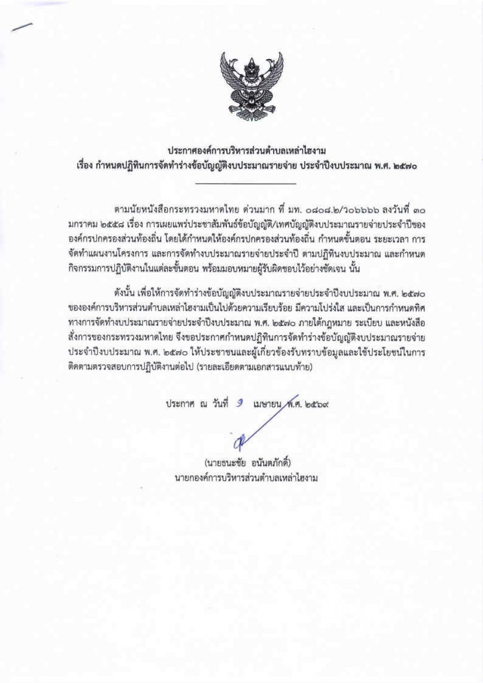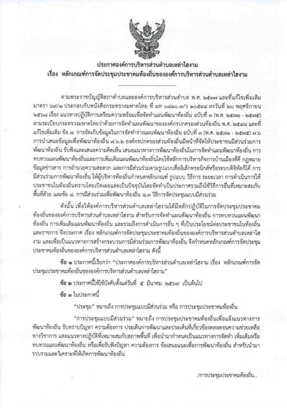ประกาศองค์การบริหารส่วนตำบลเหล่าไฮงาม เรื่อง หลักเกณฑ์การจัดประชุมประชาคมท้องถิ่นขององค์การบริหารส่วนตำบลเหล่าไฮงาม