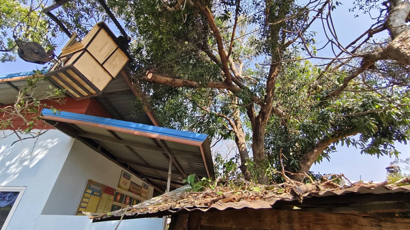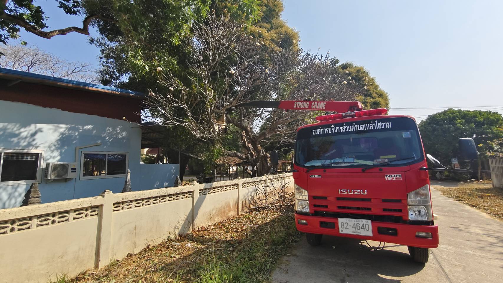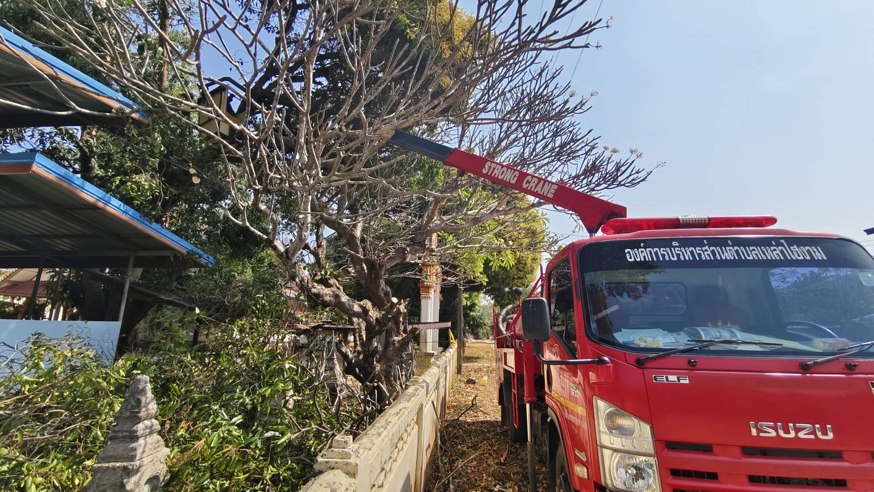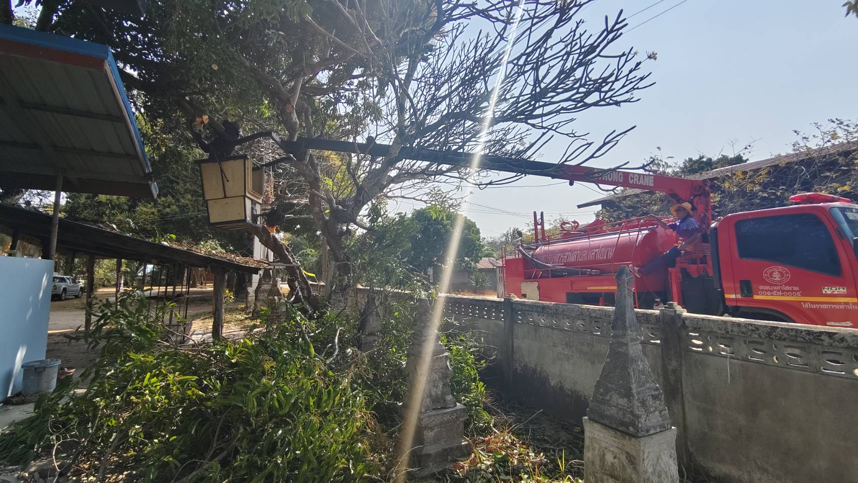ลงพื้นที่ดำเนินการตัดกิ่งไม้ที่หักทับหลังคา ศูนย์พัฒนาเด็กเล็กบ้านหนองเม็ก
